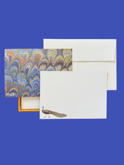 Peacock Marbled Notecard Set with Laid Envelopes