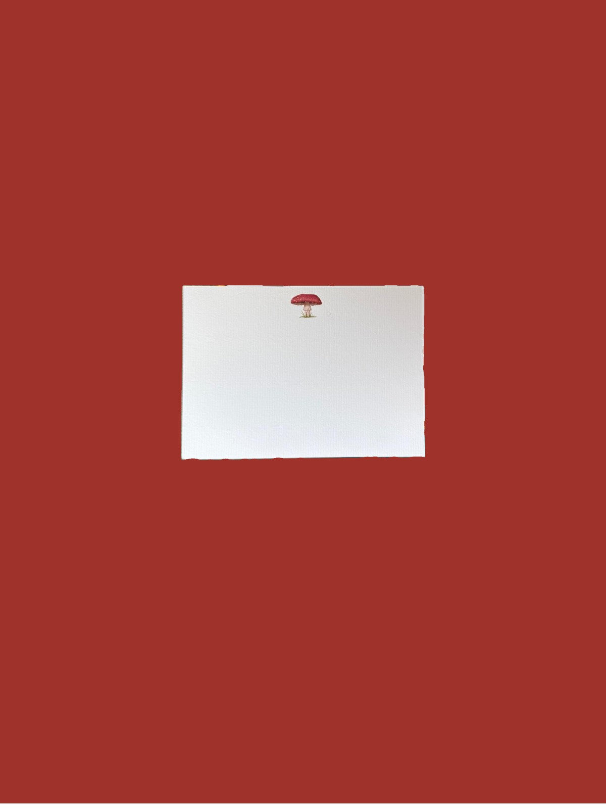 Our Toadstool mushroom notecards with red lined envelopes are universally useful notelets. Printed on the finest 350gsm Laid card these quality notelets don't bleed when you use a fountain pen.